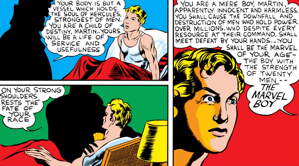 As to Marvel Boy being any sort of proof that Goodman liked teen heroes: The character was a) the only teen hero from Goodman at the time and b) was a commercial failure. So ca Amazing Fantasy 15, maybe Goodman was gun shy about a teen hero. Since we’re speculating.