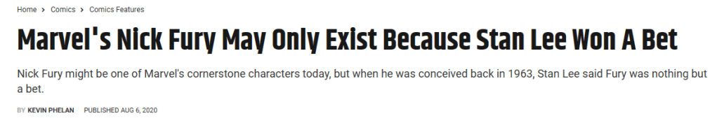 Remember the lack of logic in Lee’s Sgt. Fury and His Howling Commandos tale. Goodman, a notorious penny pincher and cheapskate not prone to experimentation or risks whatsoever per Lee and various comic experts, tells Lee that the recent success of the Marvel line must be the titles. Lee responds that it’s the writing and, to prove it (!), he’ll come up with a series that has the worst title he can think of and prove it can sell. Goodman, a conservative with finances who studies the market and the competition, accepts this bet (!!) for the sole purpose of “finally proving” Lee wrong, since this is apparently an ongoing and verbalized issue of Goodman’s that Lee is seemingly aware of. Think about that. Think about how blatantly false and nonsensical that story is and how it cannot hold up in the face of logic and recorded history. And yet people accept this story, even when many of the contradictions about Goodman have been regularly provided by Lee himself.