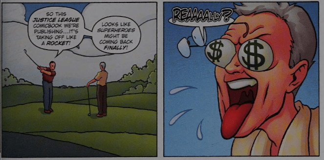 • Martin Goodman is frequently drawn with dollar signs all around his head, the implication being that, unlike Lee, he can’t see the bigger picture.