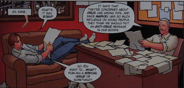 The much-repeated story of Lee’s sainted wife Joan taking an immense interest in Lee’s career and urging him to do things his way in order to attract more sophisticated readers. Worth noting that much of the dialogue in this scene comes directly from 2002’s “Excelsior!” so perhaps that’s why Lee gets a credit for story.