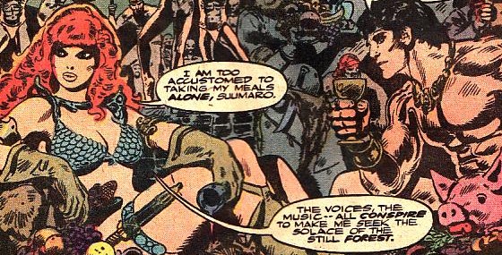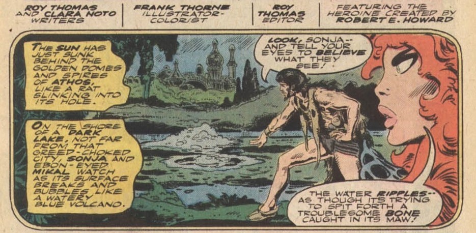 NOTO: “Not a word of- not a word of truth. The way that the whole thing started, I think it was- another night at the Heidelberg Roy hands me a dirty, rumpled sheet of paper- white typing paper and there’s a paragraph on it, typed- he said Ed Summer had written a plot, and he wanted to use it for Red Sonja.