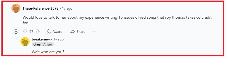 Only a week or so after that, something interesting happened in that Noto herself apparently chimed in on a reddit thread involving Roy Thomas and seminal Sword & Sorcery character Red Sonja. After all I’d read about her- almost immediately before her appearance in such an outlet- it was completely unexpected. It was intriguing all the same.