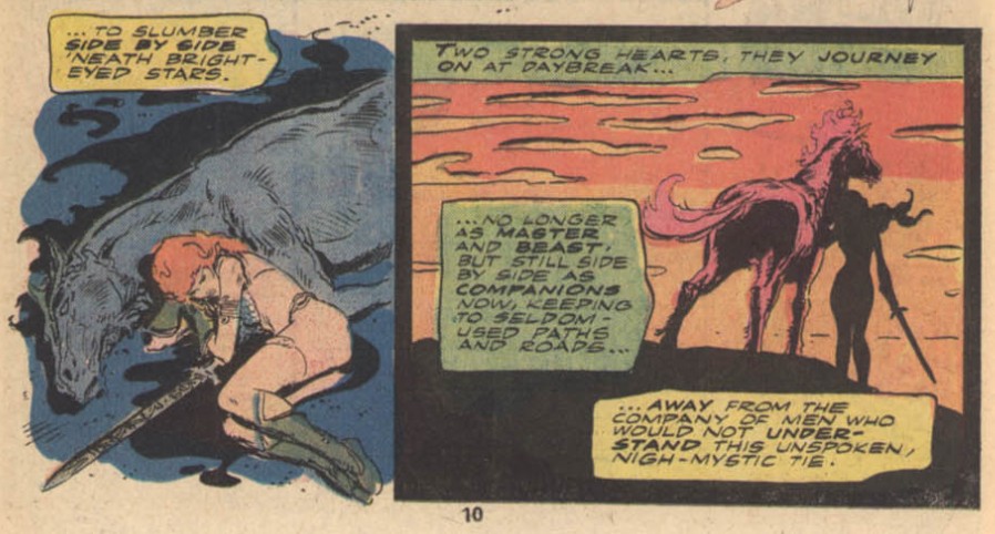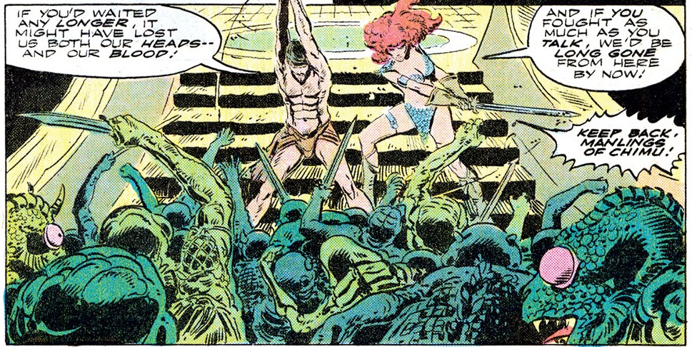 That, even though it was a Robert E Howard character, that that comic was- it was his conception, or whatever. And he did not want Red Sonja to outshine Conan. And his version of Conan- there isn’t a cliche in the world that Roy does not like. And he’s very broad, his writing such as it is, is very broad and it isn’t- he was never as interested in the ancient world and the medieval kind of stuff and the sword fighting stuff as I was…