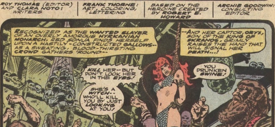 I’m wondering what Ms Noto means by this. “The Shadow of the Vulture,” the original Red Sonya story by Robert E. Howard, was a historical adventure set at the end of the Middle Ages (1529 to be precise, at the Ottoman Siege of Vienna): although not technically a crusade like those of the 11th-13th Century to the Levant, it’s definitely in the general milieu. If anything, that would bring Sonja closer to Robert E. Howard’s version, not further! I’d be very interested in where Ms Noto wanted to take the character had they not followed the Frank Thorne route.