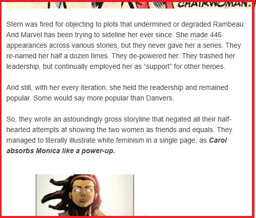 I was unaware of the scene that post describes where Carol absorbs Monica but- that’s really horrible and tone deaf. And I understand if the authors don’t know the history of what was done to this character- but, honestly- wasn’t it their job here to know?