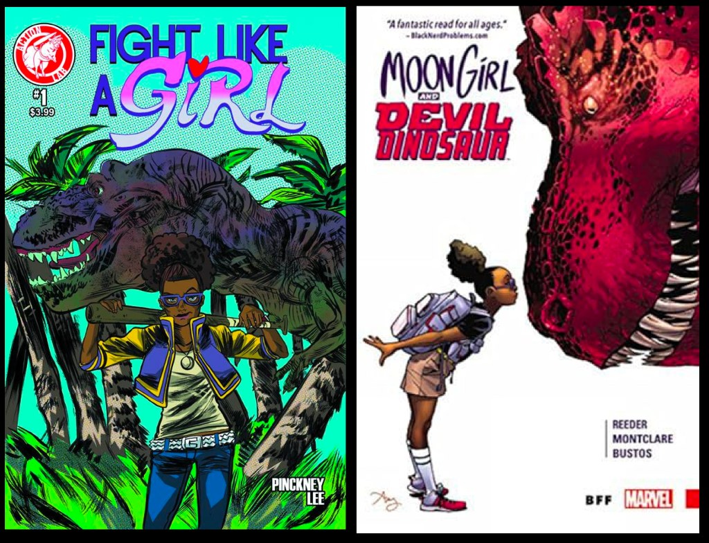 Months later, in 2015, Marvel premiered the Moon Girl and Devil Dinosaur comic, and- well. It struck many as being directly ripped off on Lee’s visually designed female protagonist, who is depicted with a giant purple dinosaur. Compare and contrast and you tell me. (Soo Lee has never spoken on this matter that I am aware of and I did not contact her for this article.)
